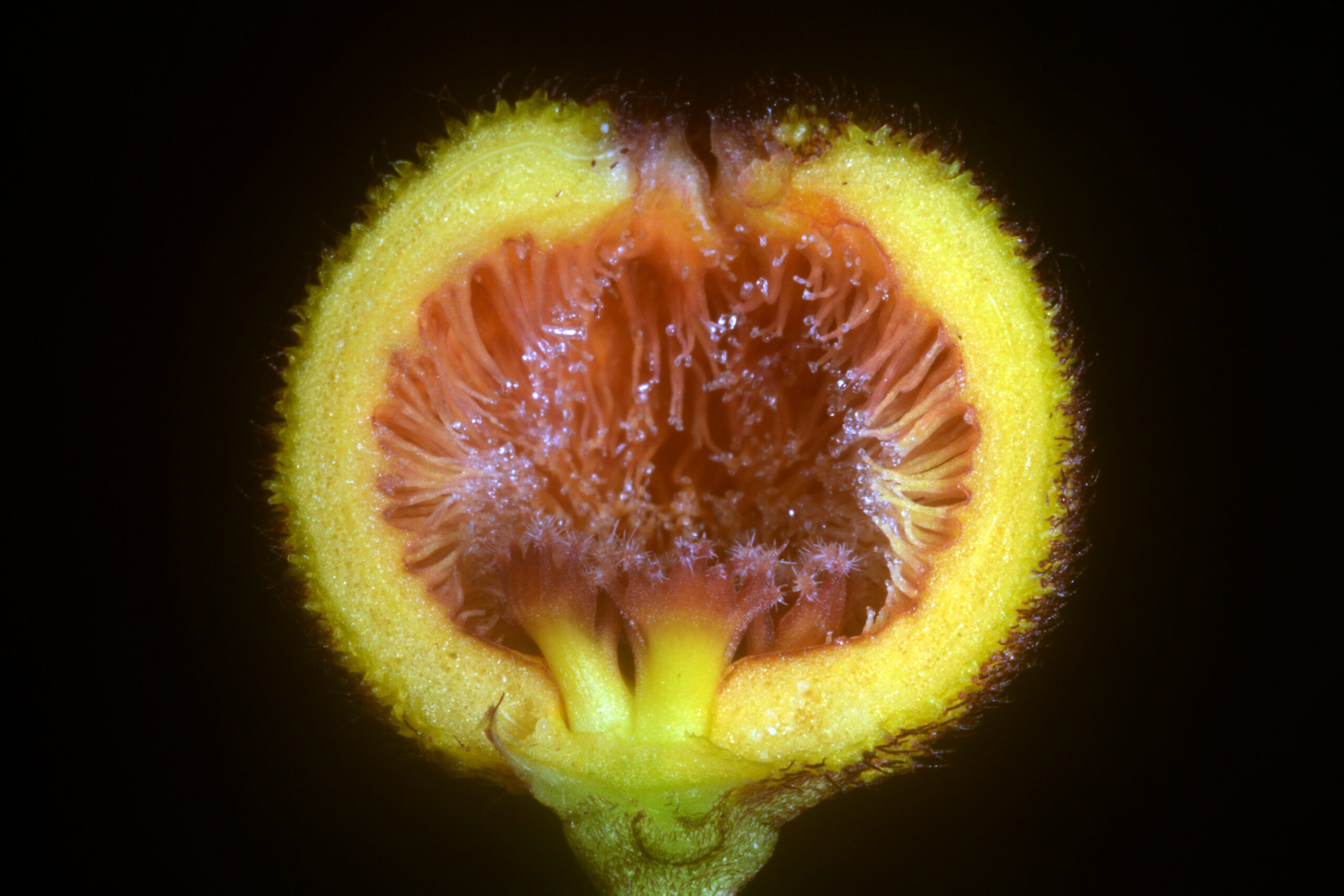 ไม้เลื้อย ยาว 3-10 ม. ทุกส่วนมีน้ำยางสีขาว ลำต้นและกิ่งรูปทรงกระบอก เลื้อยพันหรือห้อยลง ใบเรียงตรงข้าม ก้านใบรูปทรงกระบอก เรียวผอม เป็นร่องตามยาวเล็กน้อย ยาว 1.8-3 ซม. เส้นผ่านศูนย์กลาง 2-2.5 มม. เกลี้ยงถึงมีขนห่างๆ แผ่นใบรูปรีถึงรูปรีแกมรูปขอบขนาน กว้าง 4-6.6 ซม. ยาว 9-14.5 ซม. หนาคล้ายแผ่นหนัง ขอบเรียบ ม้วนลงเล็กน้อย โคนรูปลิ่มถึงกลมมน ด้านบนมีต่อมรูปขอบขนานแกมรูปไข่ 3-5 ต่อม ปลายใบแหลมถึงเรียวแหลมสั้นๆ แผ่นใบด้านบนสีเขียวเข้ม มีขนละเอียด ด้านล่างสีอ่อนกว่า เกลี้ยงถึงมีขนห่างๆ ตามเส้นใบ เส้นกลางใบเด่นชัดทางด้านล่าง เส้นแขนงใบเห็นชัด แต่ละข้างมี 4-6 เส้น ช่อดอกแบบช่อกระจุกหรือคล้ายช่อซี่ร่ม ออกเหนือซอกใบ มี 5-10 ดอก ก้านช่อดอกรูปทรงกระบอก สีเขียว ยาว 1-3 ซม. เส้นผ่านศูนย์กลาง 2-3 มม. เกลี้ยงหรือมีขนห่างๆ ก้านดอกสีเขียวหรือสีน้ำตาลอมเขียว ยาว 2.7-2.8 ซม. เส้นผ่านศูนย์กลาง 2-2.5 มม. มีขน ใบประดับขนาดเล็ก สีน้ำตาลอมเขียว รูปสามเหลี่ยม ปลายแหลม ติดที่โคนก้านดอก มีขน แฉกกลีบเลี้ยงเรียงซ้อนเหลื่อมกันแบบควินคันเชียล รูปสามเหลี่ยมแกมรูปไข่ ยาว 2.5-3 มม. กว้าง 2.4-3 มม. สีน้ำตาลอมเขียว ปลายแหลมถึงมนกลม มีขน มีต่อมรูปขอบขนานแกมรูปไข่อยู่ด้านในบริเวณส่วนเว้าของแฉก กลีบดอกรูปทรงกลม สีเหลืองถึงสีน้ำตาลอมเหลือง ยาว 1.4-1.6 ซม. เส้นผ่านศูนย์กลาง 1.5-1.9 ซม. หลอดกลีบดอกป่องพองบริเวณตรงกลาง ผิวด้านนอกมีขนหยิกหนาแน่น ผิวด้านในมีขนต่อมอวบยาวหนาแน่น แฉกกลีบดอกสั้น รูปสามเหลี่ยมแกมรูปไข่ ยาว 3.3-3.5 มม. กว้าง 3.8-4.1 มม. หนา 1.5-2 มม.ปลายแหลม โค้งเข้าในเล็กน้อย เรียงจดกันในดอกตูม เมื่อดอกบานไม่แผ่กางออก เส้าเกสรไร้ก้าน รูปถ้วย ยาว 4-5 มม. เส้นผ่านศูนย์กลาง 7-8 มม. รยางค์ที่วงเกสรเพศผู้มี 5 แฉก อวบมีเนื้อ สีเหลือง สีม่วงแกมสีเหลืองถึงสีม่วง รูปช้อน ยาว 5-6.4 มม. กว้าง 4.1-4.3 มม. ปลายเป็นพูคล้ายนิ้วมือ 6-8 พู ปลายพูมีขนสีขาว เรียงเป็นแถวเดียว ติดอยู่ที่โคนเกสรเพศผู้ ตั้งขึ้น เชื่อมกันที่โคน ชุดกลุ่มเรณู 5 ชุด ตั้งขึ้น กลุ่มเรณูรูปไข่กว้าง สีเหลือง ยาว 0.18-0.19 มม. กว้าง 0.16-0.17 มม. ก้านกลุ่มเรณูใส ยาว 0.06-0.07 มม. กว้าง 0.05-0.06 มม. ส่วนยึดก้านกลุ่มเรณูรูปขอบขนานแคบ สีน้ำตาลอมแดง ยาว 0.14-0.16 มม. กว้าง 0.04-0.05 มม. คาร์เพลรูปไข่ ยาว 2.5-3 มม. เส้นผ่านศูนย์กลาง 1-1.3 มม. เกลี้ยง ยอดเกสรเพศเมียรูป 5 เหลี่ยม ผลแบบผลแตกแนวเดียว มี 2 ผล กางออก ผลรูปขอบขนานแกมรูปแถบ ทรงกระบอก สีเขียว ยาว 16.5-17 ซม. เส้นผ่านศูนย์กลาง 0.8-0.9 ซม.